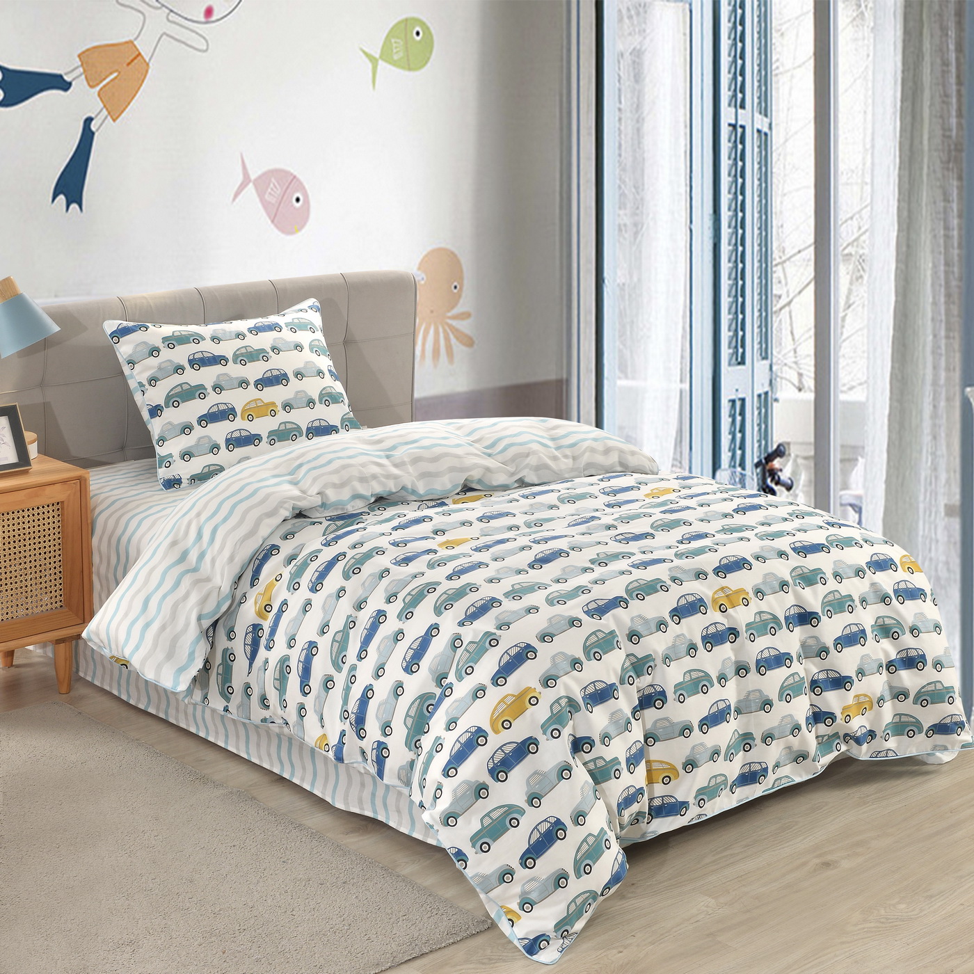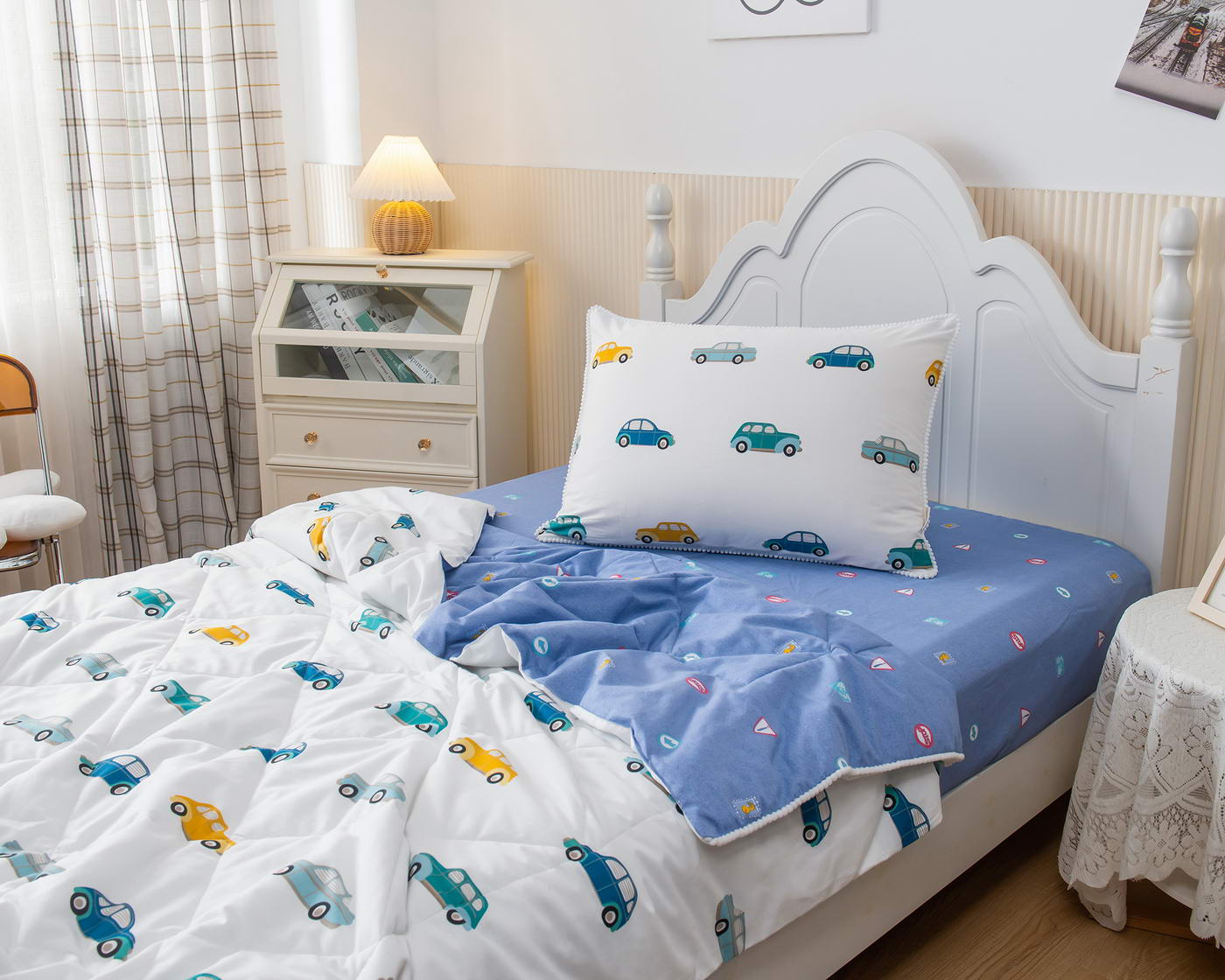 Комплект Sofi De Marko Машинки Ретро с одеялом, белый