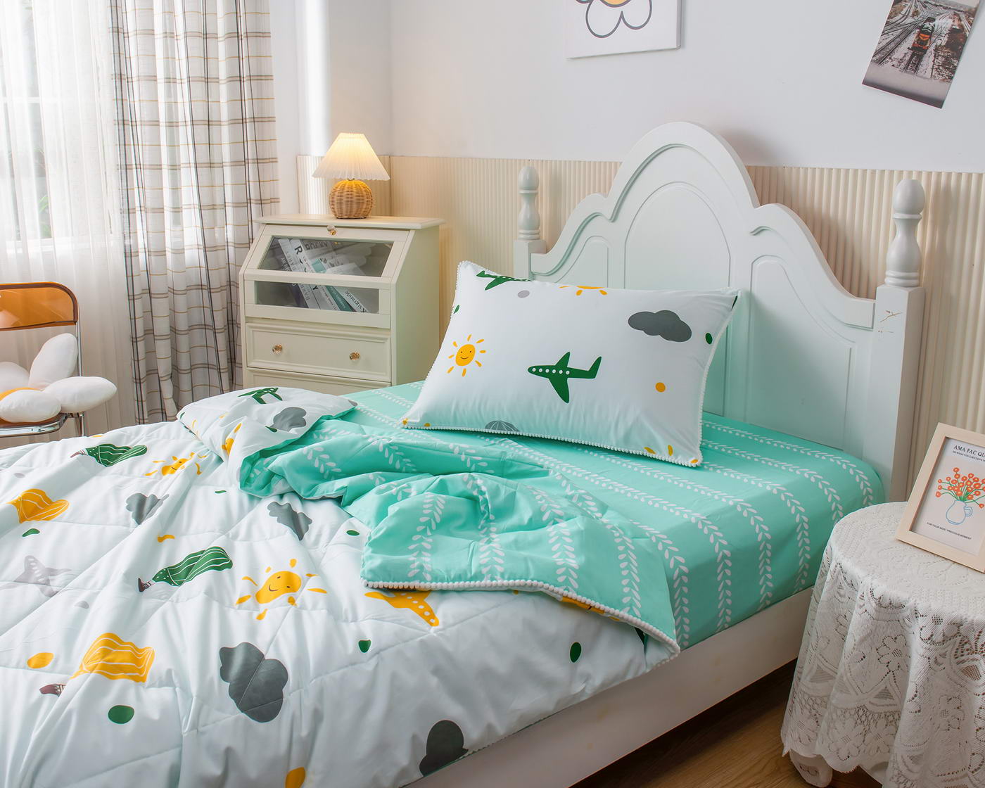 Комплект с одеялом Sofi De Marko Паддингтон, светло-зеленый